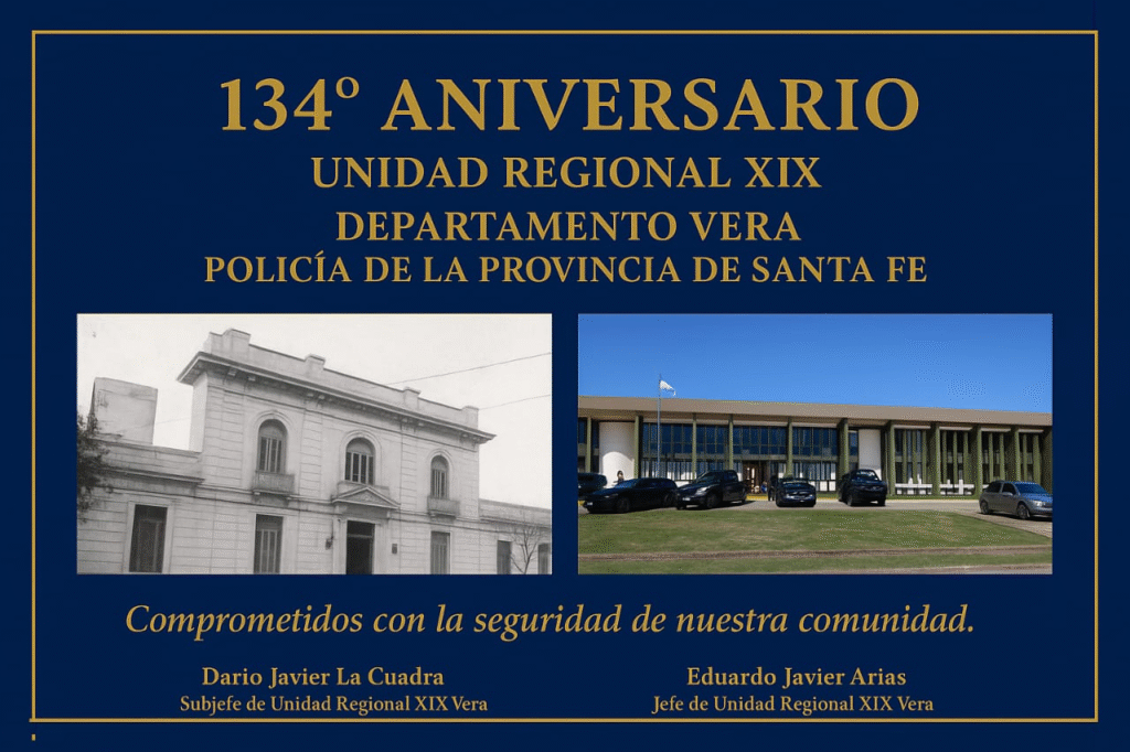 En la mañana de la fecha, en el patio de la Jefatura de la Unidad Regional XIX – Departamento Vera, se llevó a cabo el acto conmemorativo por el 134° Aniversario de la creación de esta Unidad Regional y el 48° Aniversario de la Sección Comando Radioeléctrico.