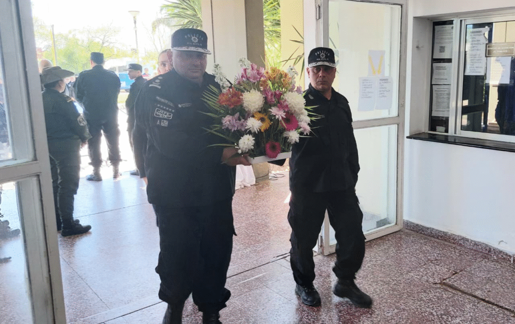 El acto dio inicio con la entonación del Himno Nacional Argentino, interpretado por integrantes de la Banda de Música Vera. Seguidamente, en homenaje al personal policial fallecido, el Señor Jefe de Policía de la Provincia, junto al Jefe de la UR XIX, depositaron una ofrenda floral, seguida de un minuto de silencio.