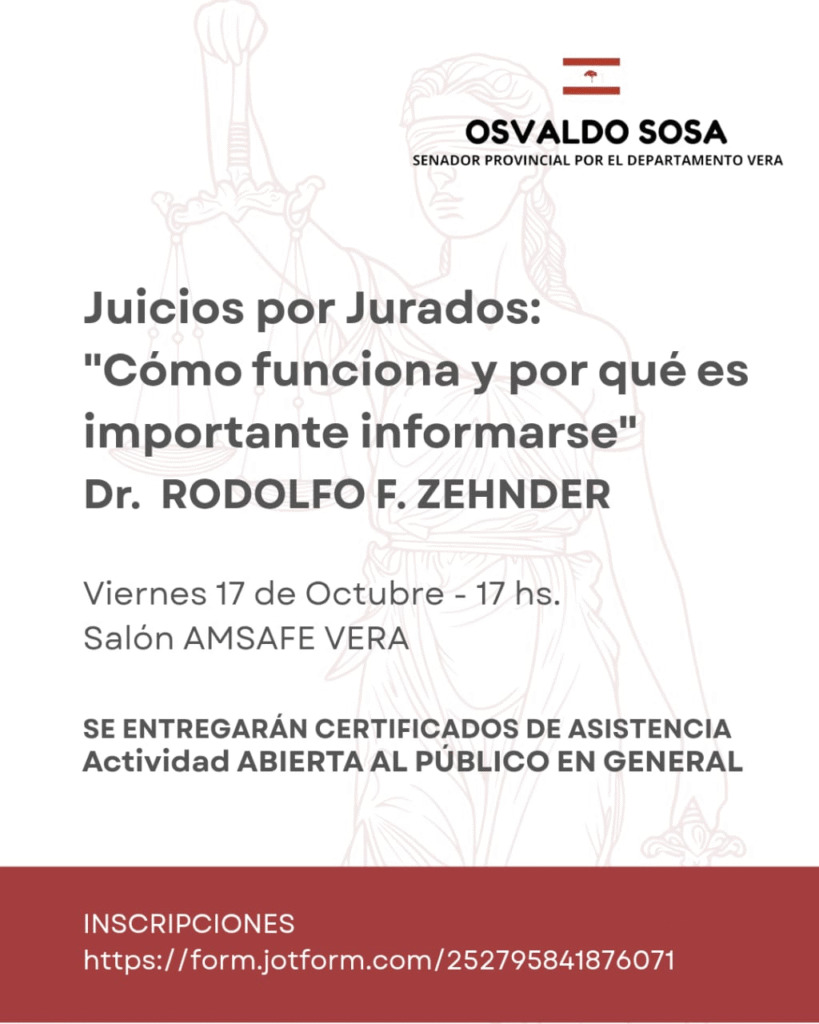 El Senador Osvaldo Sosa y la Dra. Mirna Borrego invitan a la charla sobre “Juicio por jurados”