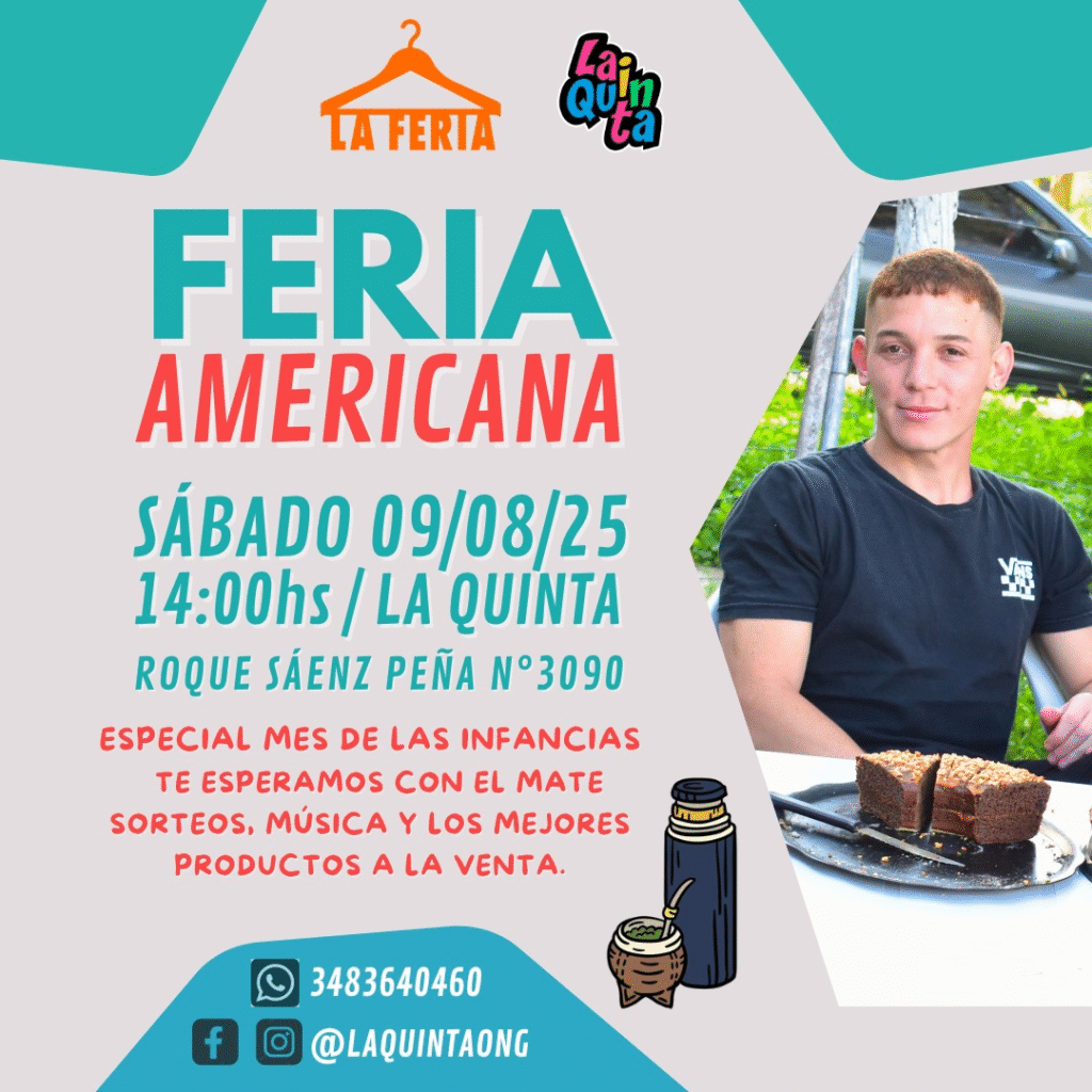 La Feria Americana, se transformó en una buena costumbre impulsada y trabajada por la gente de la Asociación Civil “La Quinta”, ya que ante la falta de políticas activas de parte de los organismos oficiales para colaborar y paliar estos momentos complicados económicamente para todos, los feriantes que asisten lo ven como una entrada de divisas que lo ayudan a llegar a fin de mes, en esta ocasión y en vísperas de los festejos del dia del niño, otro gesto a destacar de este grupo de trabajo es que celebran lo que ellos denominan, “El Mes de Las Infancias”, e invitan para todo esto el próximo sábado.