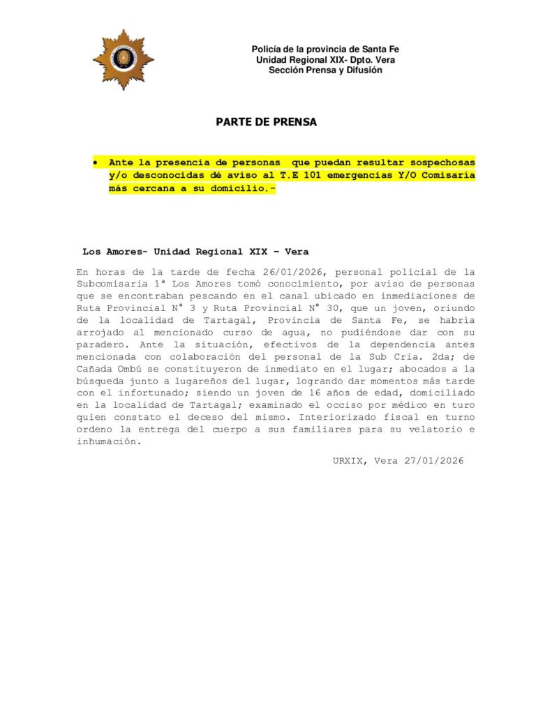Joven de 16 años se ahogo en un canal lindero a ruta Provincial 3