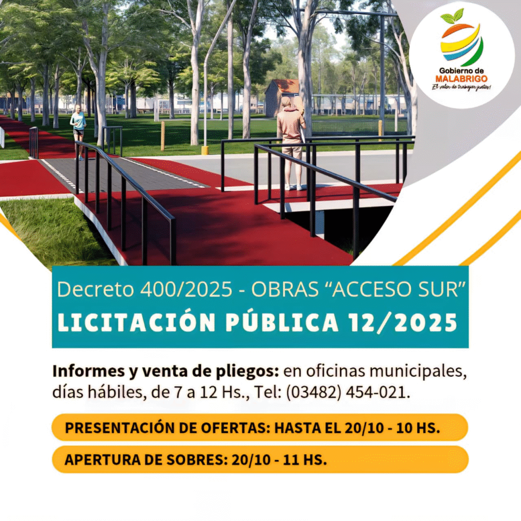 ▪️Destinados a las Obras de renovación y mejoras de Acceso Sur a la Ciudad de Malabrigo en el marco del Programa de Obras Urbanas.- La Adjudicación se hará por Ítems.