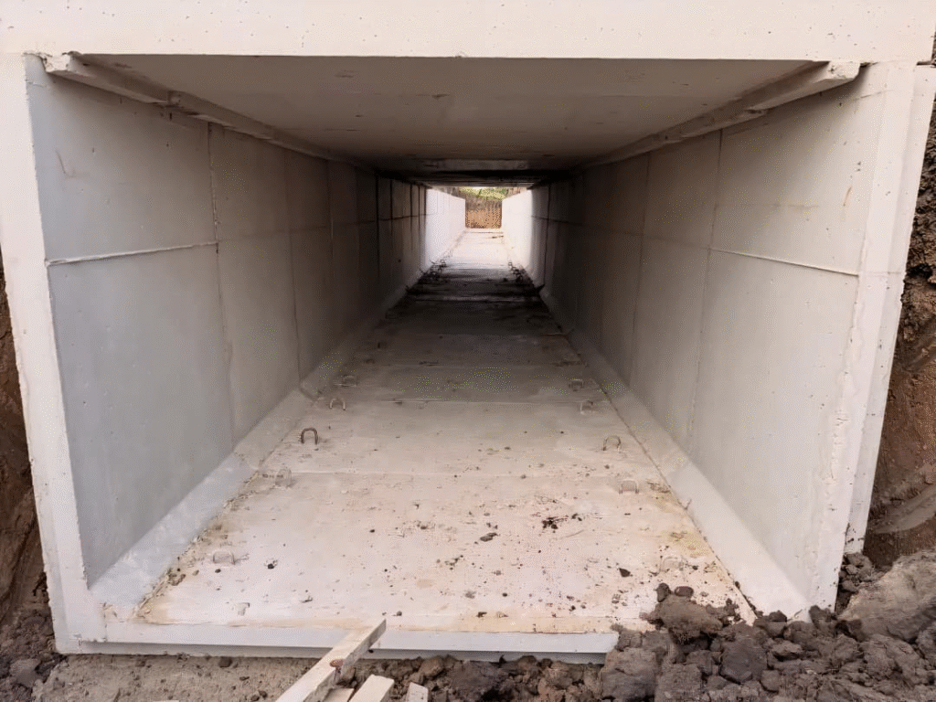 En la intersección de la Avenida 18 de Junio y la Ruta Nacional Nº 11, y tras la ejecución de una sólida base de hormigón, se encuentran en plena colocación 34 módulos de desagües pluviales, una infraestructura de gran porte diseñada para optimizar el drenaje del agua y mejorar significativamente la seguridad vial y la calidad de vida de los vecinos.