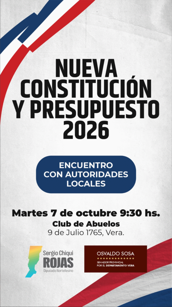 El senador Osvaldo Sosa y el diputado Rojas convocan a un encuentro de trabajo con autoridades del departamento Vera, con el propósito de generar un espacio de diálogo y análisis en torno a los desafíos institucionales y de gestión que atraviesan a los gobiernos locales. La iniciativa busca fortalecer la articulación entre municipios, comunas y representantes legislativos.