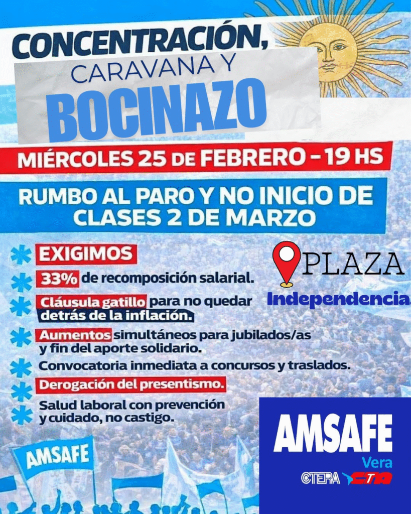 Tal cual estaba previsto de acuerdo a las convocatoria que se vienen realizando por redes, se llevo adelante una nueva marcha de los docentes autoconvocados, en este caso de Vera con la presencia de AMSAFE, SADOP, SITRAM, CONCEJALES Y Publico en General.