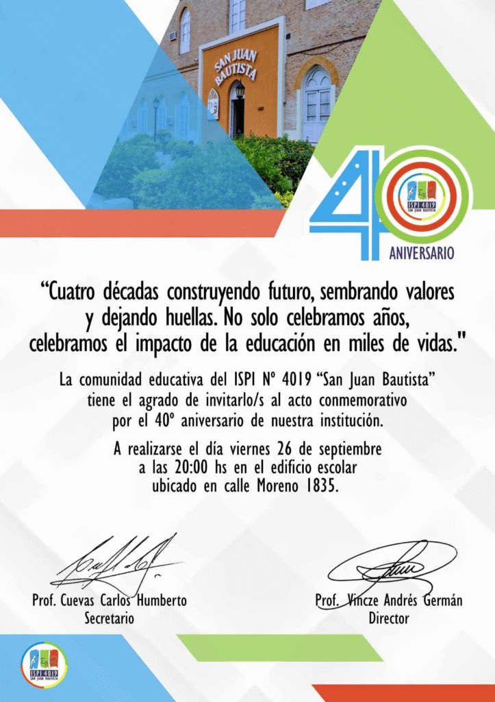 Profesor Andrés Vincze, Director del ISPI 4019 y los 40 años de esa Institución