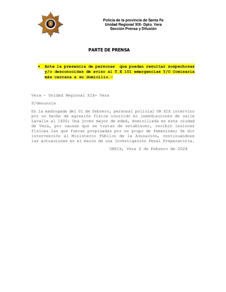 Párrafo aparte merece la situación ocurrida (UNA VEZ MÁS), en la Mesa de Entradas del MPA de Vera, donde el secretario el día lunes 2 de junio por la mañana, informó a las amigas de la joven agredida que la denuncia aún no había sido remitida desde la Unidad Regional XIX, sin embargo y tras realizar averiguaciones, desde nuestra producción pudimos corroborar que desde la policía el hecho había sido comunicado al MPA el domingo por la tarde, este episodio deja en evidencia una preocupante falta de respeto y una posible impunidad por parte de algunos empleados judiciales, cuyas acciones u omisiones los convierten en cómplices y de alguna manera toman el pelo a las personas vulnerables por la situación misma que viven en el momento. Ante esta situación, surge el interrogante de a quién responden, y por qué desde “LA MESA DE ENTRADAS DEL MPA DE VERA”(UNA VEZ MÁS), literalmente mienten o mal informan a las victimas … del mismo modo “no hay explicacion creible“, sobre la demora de que aparezca semejante hecho dentro del parte policial, que recién hoy y luego de nuestras averiguaciones aparece el mismo, informando a la comunidad de un hecho tan grave relacionado a con la inseguridad.