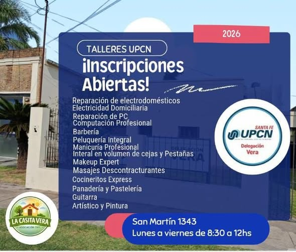 La delegación Vera de UPCN, en convenio con la Asociación Civil “La Casita”, presenta su oferta de talleres y cursos para el ciclo 2026, las diversas propuestas incluyen diversas opciones de formación destinadas tanto a afiliados como a la comunidad en general.
